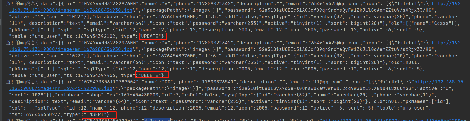 * 消费mq, 判断如果监控到shop.ums_user表数据有更新或者新增或者删除,发送邮件
