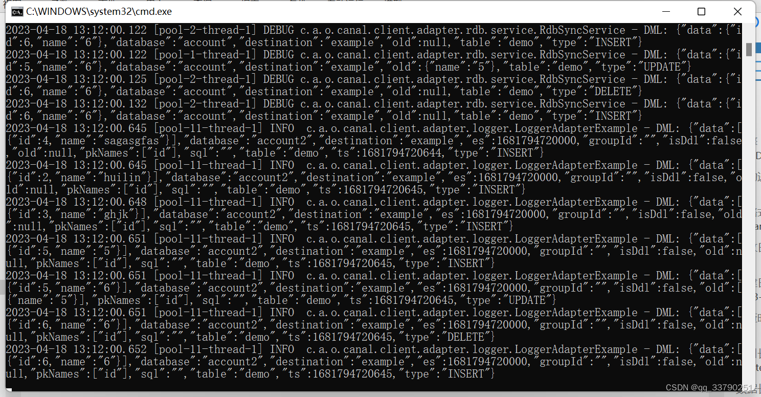 配置完成后,先启动服务端(省略zk安装,较为简单可以自己百度),然后启动客户端,新建表添加数据进行测试。需要注意如果要同步DDL语句,必须用mirror方式,否则只能同步dml单表记录。