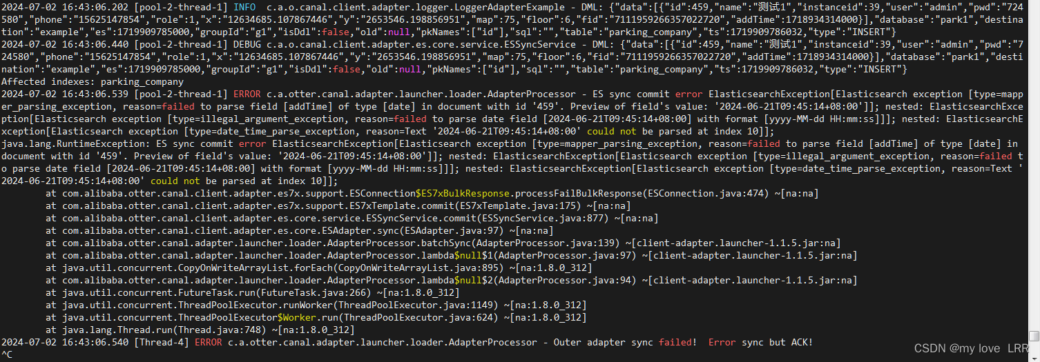 canal1.1.5同步mysql数据时间问题:failed to parse field xx of type [date] in document with id xxx. Preview of