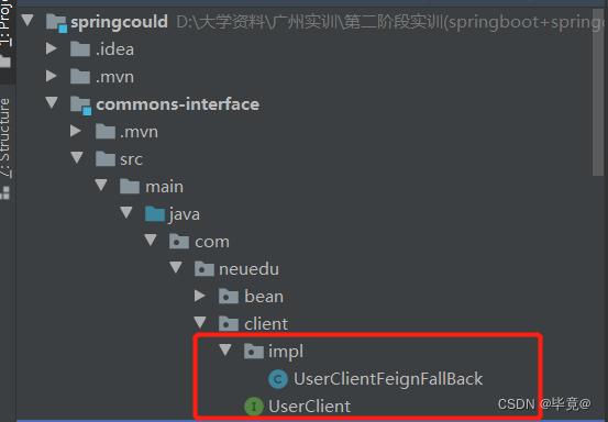 该类需要继承FeignClient远程调用的接口UserClient,并且重写该接口的方法的业务失败后需要实现的逻辑。