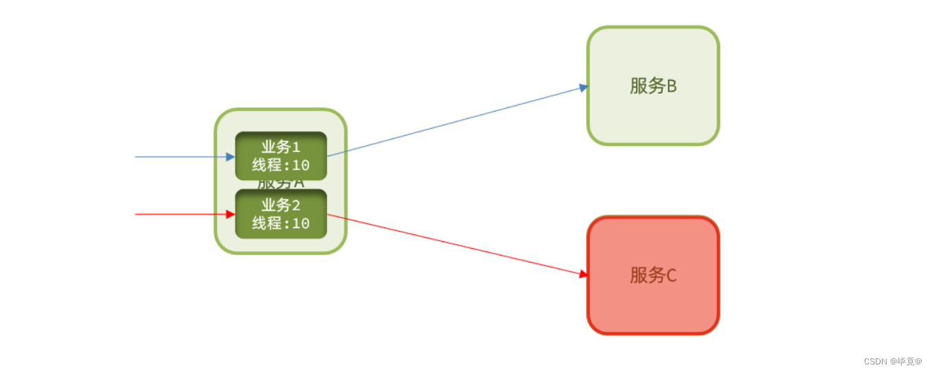 调用者在调用服务提供者时,给每个调用的请求分配独立线程池,出现故障时,最多消耗这个线程池内资源,避免把调用者的所有资源耗尽。