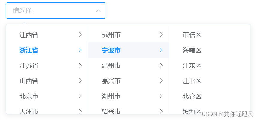 vue实现三级省市区三级联动