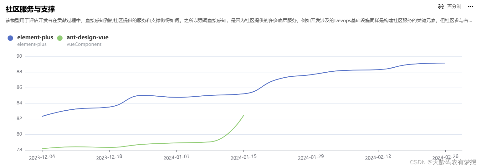 Element Plus和Ant Design Vue两者都是优秀的前端 UI 框架。我们通过对这两个开源项目的生产力、稳健性和创新力进行了评估(以上数据来源于https://oss-compass.org/compare/s5jyxysy..sa7fu6v6?range=6M#topic_overview),相关指数显示 Element Plus 在各个方面均领先于 Ant Design Vue。
