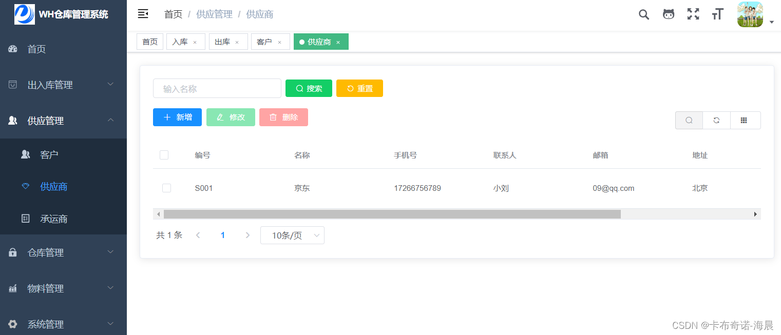 基于Java+SpringBoot+vue仓库管理系统设计与实现