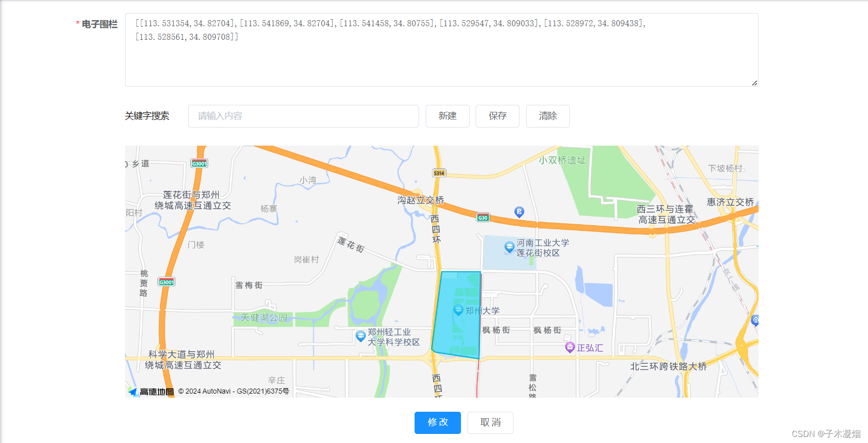 3.配置关键字搜索快速定位,绘制电子围栏