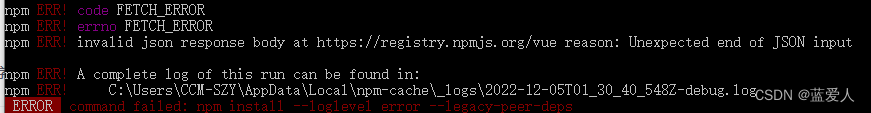 invalid json response body at https://registry.npmjs.org/vue reason: Unexpected end of JSON input