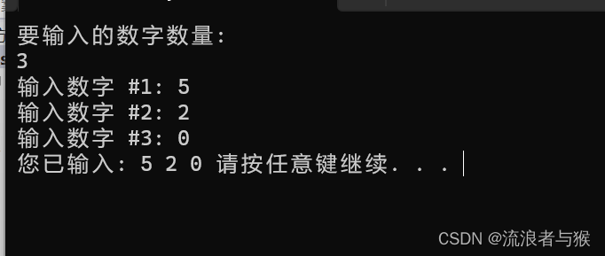 printf("输入数字 #%d: ", n + 1);