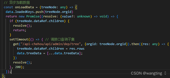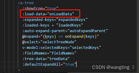 - LoadData 方法点击节点异步加载数据 expandedKeys: 展开的节点, LoadedKeys: 已加载的节点, 返回的数据中要有isLeaf判断是不是末级节点 onExpand: 点击节点的时候触发