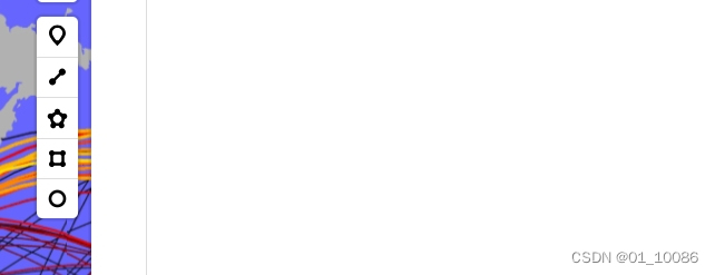 最右侧是标记工具和数据查看的区域,还是以航线图为例。我们可以将港口的位置标定,然后标出航线。5个按键从上至下依次是标点,标线,画任意形状,画方框和画圆。