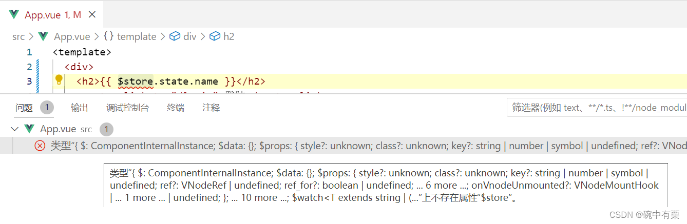 在vue3+ts+vuex项目中使用$store出现以下: