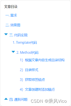 根据string类型的字符串文章内容,提取H1-H6标签,生成文章目录结构展示,并且对应生成锚点,点击可跳转。