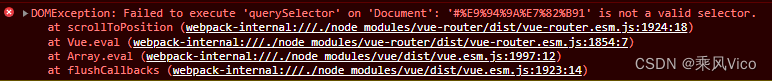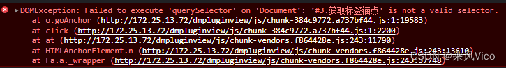 中文锚点 #锚点1 被转义为 #%E9%94%9A%E7%82%B91 导致控制台报错,但是能work,正确跳转。。。