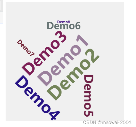 // 词云文字旋转范围和步长。 文本将通过旋转在[-90,90]范围内随机旋转步骤45