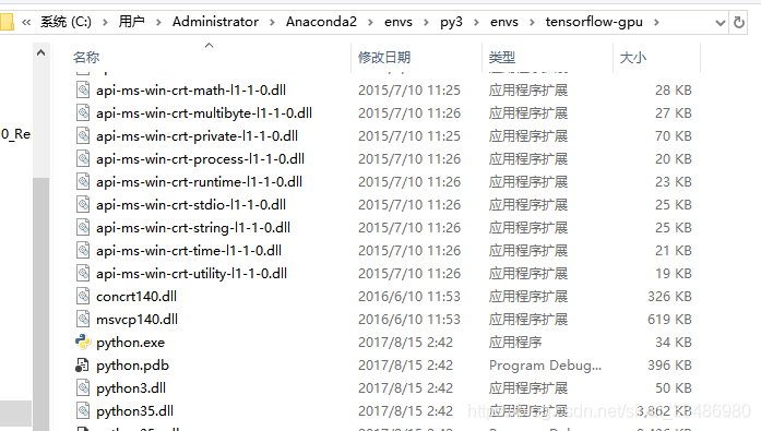 我最后的安装位置:anaconda2下面的虚拟环境py3下面新建虚拟环境:tensorflow-gpu