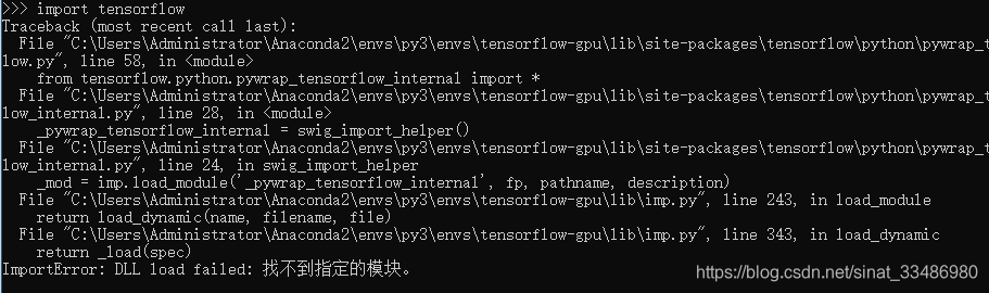 试过重装很多次,都还是一样,报同样的错误,原因是tensorflow版本和cuda版本不匹配导致的。我的cuda是10.1版本,而tensorflow最新的是1.13.1(今天刚出了1.14.0还没提供下载),只支持到cuda 10.0,因此一直会提示dll加载失败。换cuda版本实在是工作量有点大,牵扯到我的caffe和torch环境,尤其caffe得重新编译,麻烦的很,想想还是算了,找找其他办法能不能解决。
