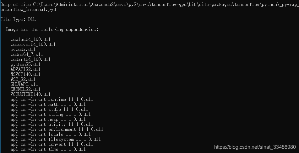 接下来就会输出目前tensorflow所依赖的dll库: