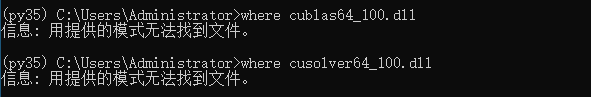 按照博客中的方法:在命令行中使用:where cublas64_100.dll 的命令来查找这些库是不是在系统的path中,但是我使用了where之后只是显示了下面的这种提示: