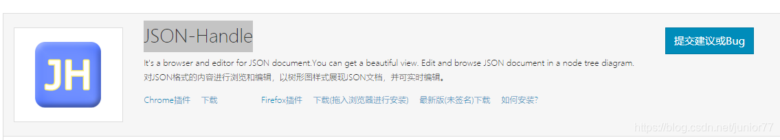 有时请求后返回结果为json数据,为了在浏览器中显示美观,可以使用chrome提供的 json插件JSON-Handle。
