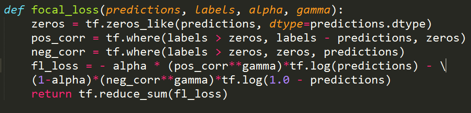tensorflow之focal loss 实现