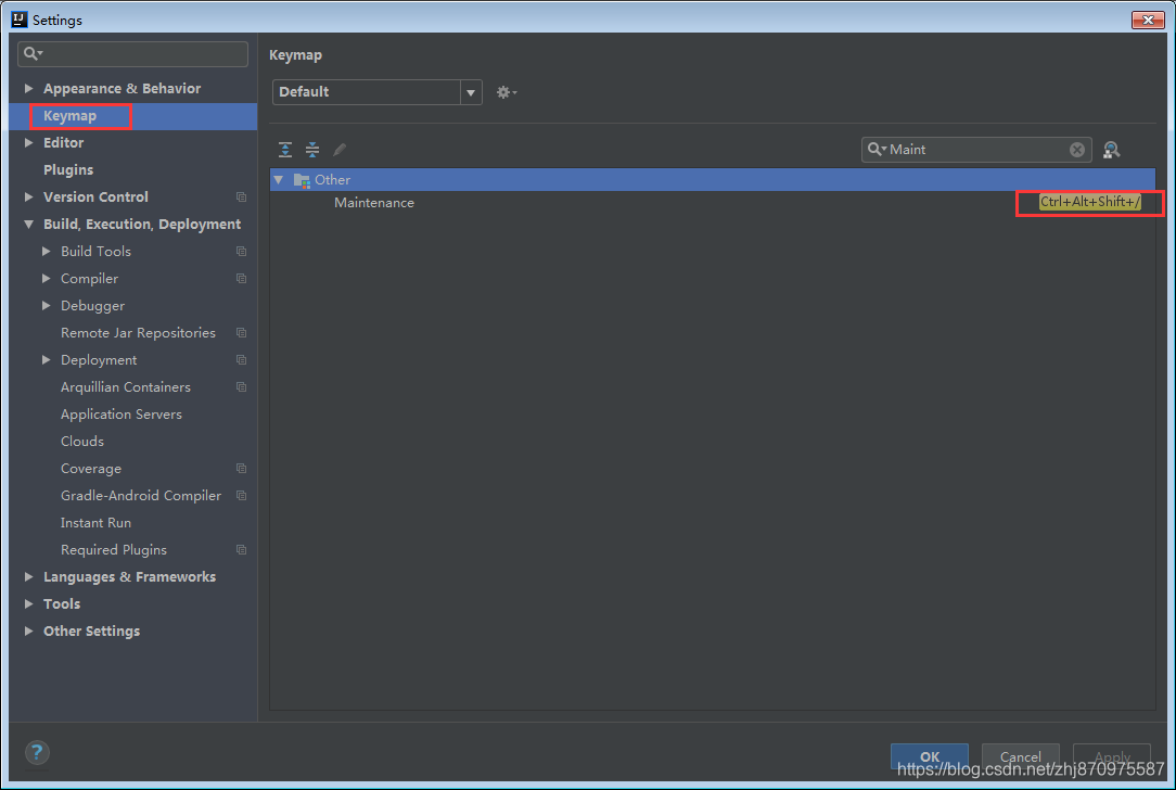 如果idea快捷键做过变更的话,可以通过“File” -> “Settings” ->“KeyMap” 搜索Maintenance找到对应的快捷键