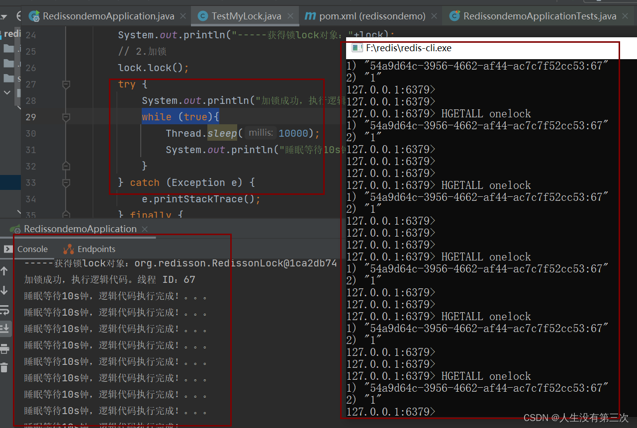 System.out.println("加锁成功,执行逻辑代码。线程 ID:" + Thread.currentThread().getId());