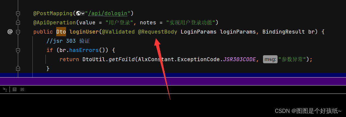 public Dto loginUser(@Validated LoginParams loginParams, BindingResult br) {