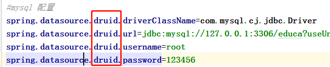 spring.datasource.druid.url=jdbc:mysql://127.0.0.1:3306/educa?useUnicode=true&characterEncoding=utf8&serverTimezone=GMT