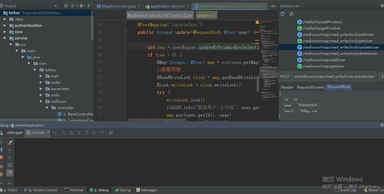 我们为更新用户使用加锁操作。根据官方提供的文档,分布式Map "RMap"拥有加锁的能力。