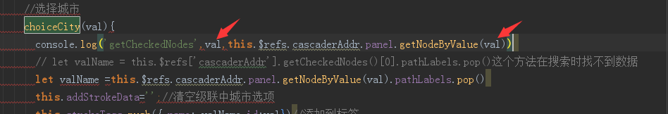 this.$refs.cascaderAddr.panel.getNodeByValue(val)