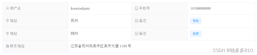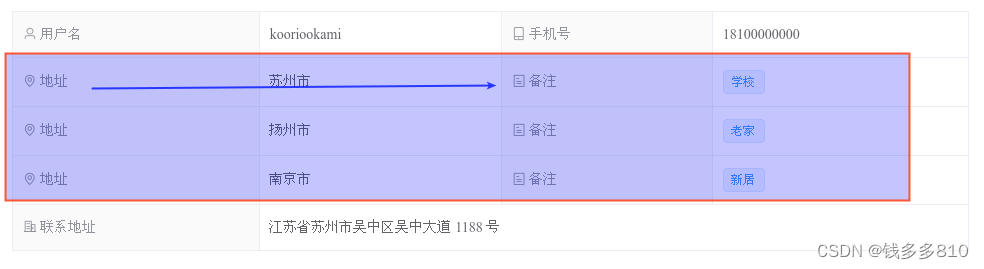 问题描述:起初我在el-descriptions中直接使用v-for进行遍历地址和备注两个el-descriptions-item,发现页面毫无反应,不会渲染这部分。