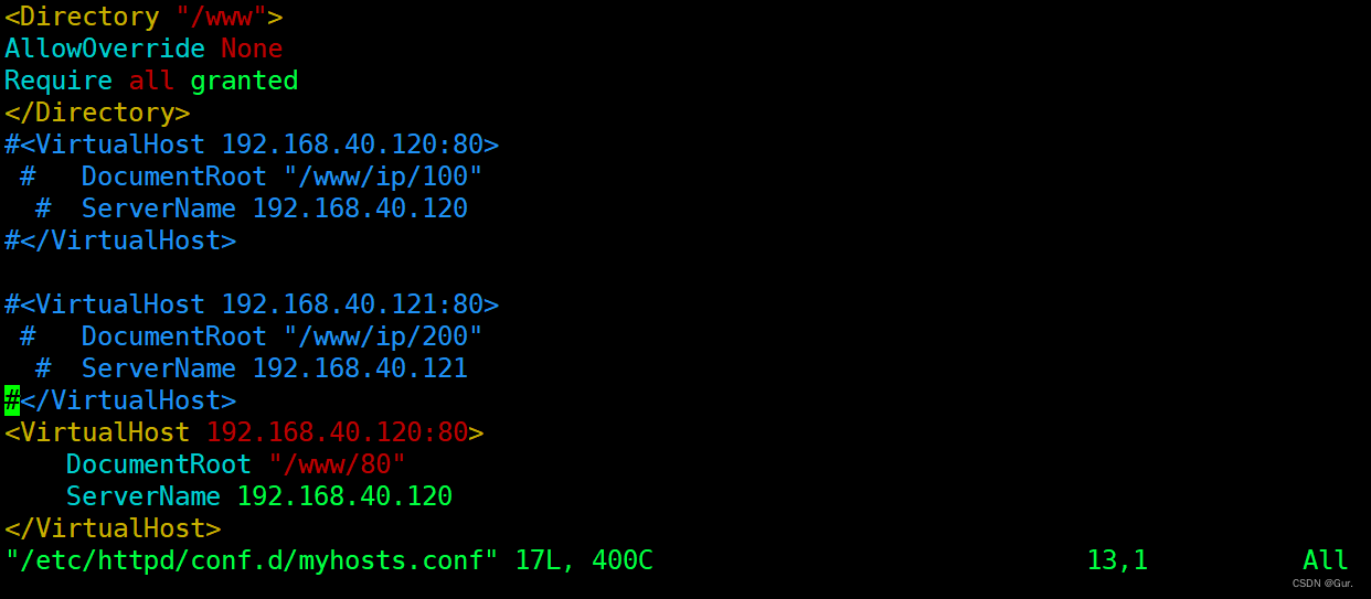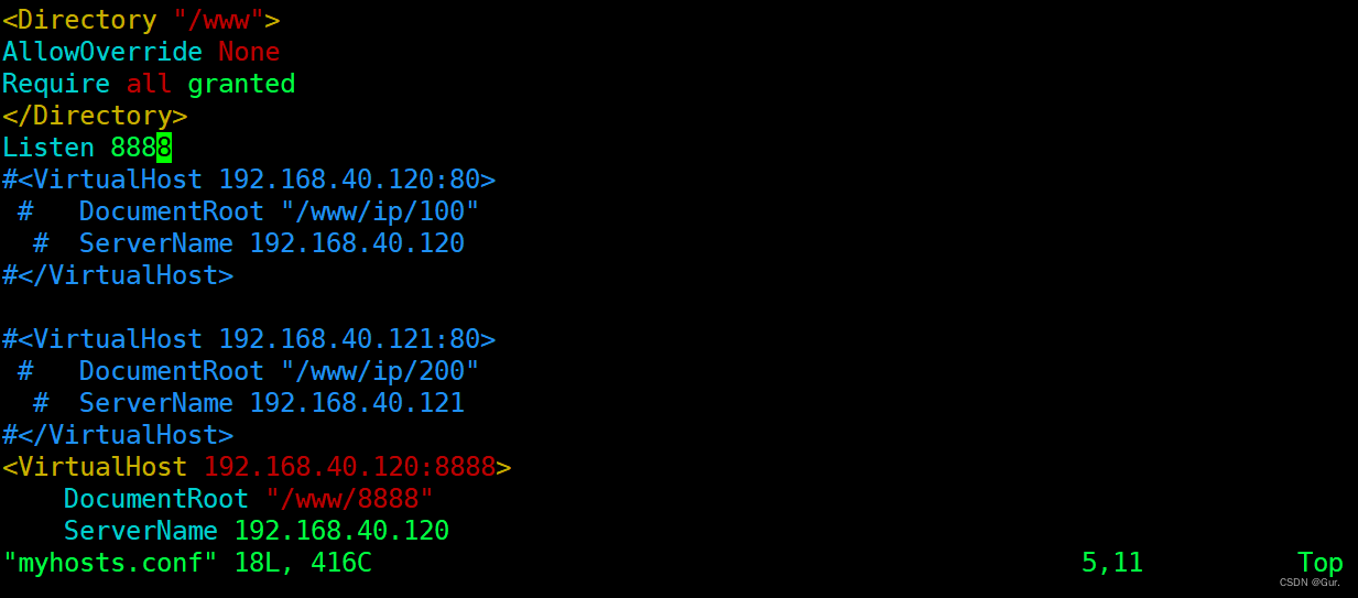 [root@rhcsa ~]# vim /etc/httpd/conf.d/myhosts.conf