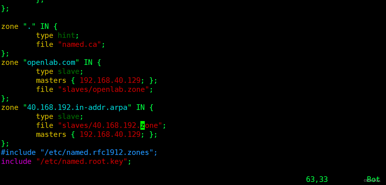 2.DNS主从配置: 需要两台机器: 一台为主dns服务器,一台为从DNS服务器