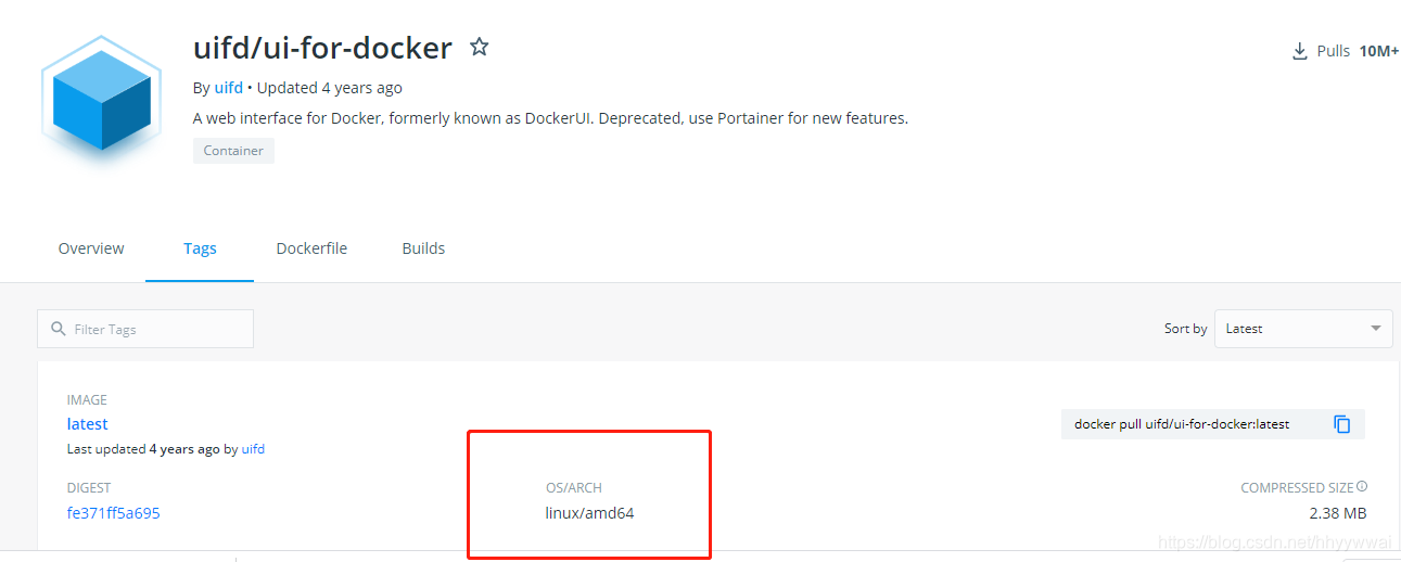 2在dockerhub网址中search此镜像,果然,找到一点线索,如下图红色方框所示: