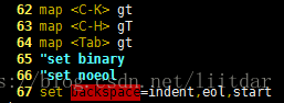 d)某些情况下,由于vim和系统自带的vi的兼容性以及一些默认设置问题,需要修改vim的配置文件“.vimrc”(此文件位于用户根目录下),在该文件中添加不兼容性设置,以及BACKSPACE的一些设置,如下: