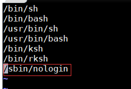 vim /etc/shells检查有没有/sbin/nologin,如图: