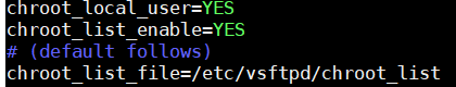 2.把chroot_local_user、chroot_list_enable和chroot_list_file注释去掉,如图: