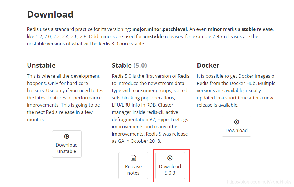 地址:http://redis.io/download,这里我下载的是最新版5.0.3版本