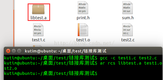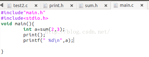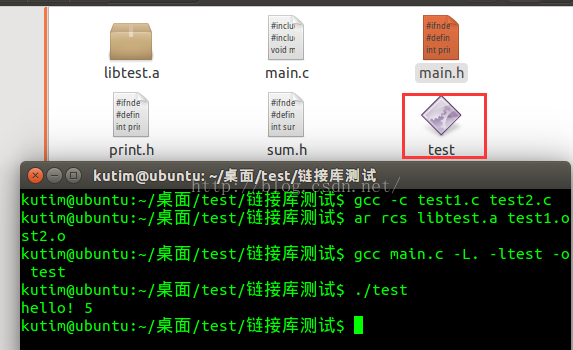 得到libtest.a库文件后,然后将.a库链接到主程序中,写主程序main.c和头文件main.h 。