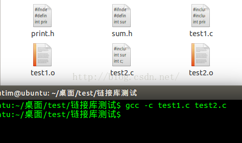 利用上面所写过的test1.c 和test2.c生成.so库的指令如下: