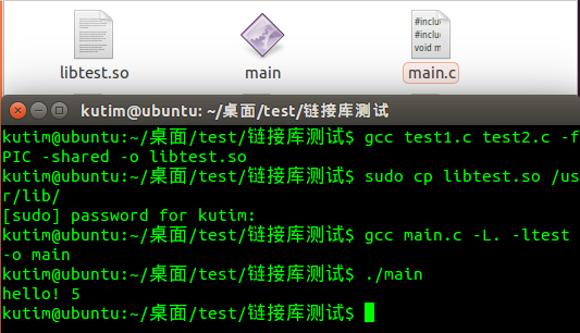 1.在执行gcc main.c -L. -ltest -o main 前,执行 export LD_LIBRARY_PATH=$(pwd)