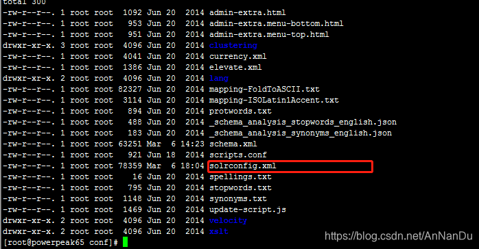 在solr里有这个core,里面有conf文件夹,找到其中的solrconfig.xml文件