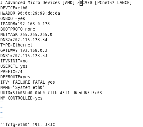 在你面输入你想要的,比如网关,ip地址等,我的配置是图上那样.各个词语也就不在这里介绍了,自己在google下哈.保存后,然后在进入这个路径:/etc/sysconfig, vim network 这个文件,在里面进行下面