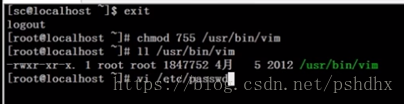 只要是给vim设置了suid,那么切换为普通用户可以把配置文件普通用户id修改为0,普通用户成为了超级用户