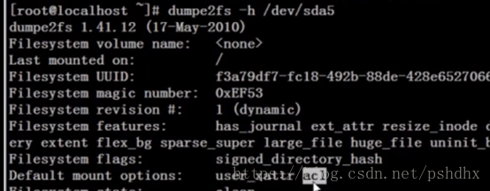 #-h选项:仅仅显示超级块中信息,而不显示磁盘块组的详细信息。