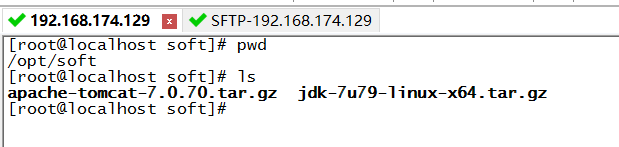 由于本人window下已经有所需的tar.gz了,直接上传就OK了,就不在linux里面下载了。将jdk,tomcat上传到宿主机的/opt/soft