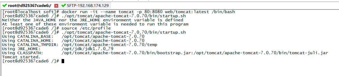 docker run -it --name tomcat -p 80:8080 web/tomcat:latest /bin/bash