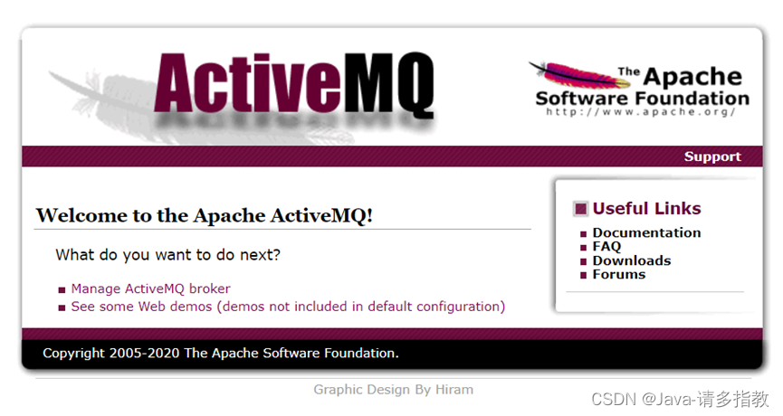 6. 在Linux系统上输入http://127.0.0.1:8161/ 即可进入ActiveMQ管理页面