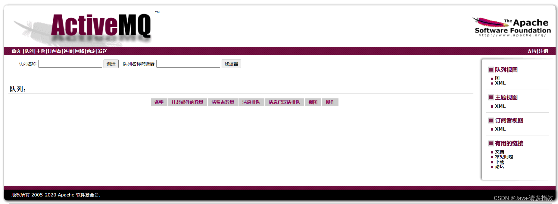 点击Mange ActiveMQ broker进入主页面