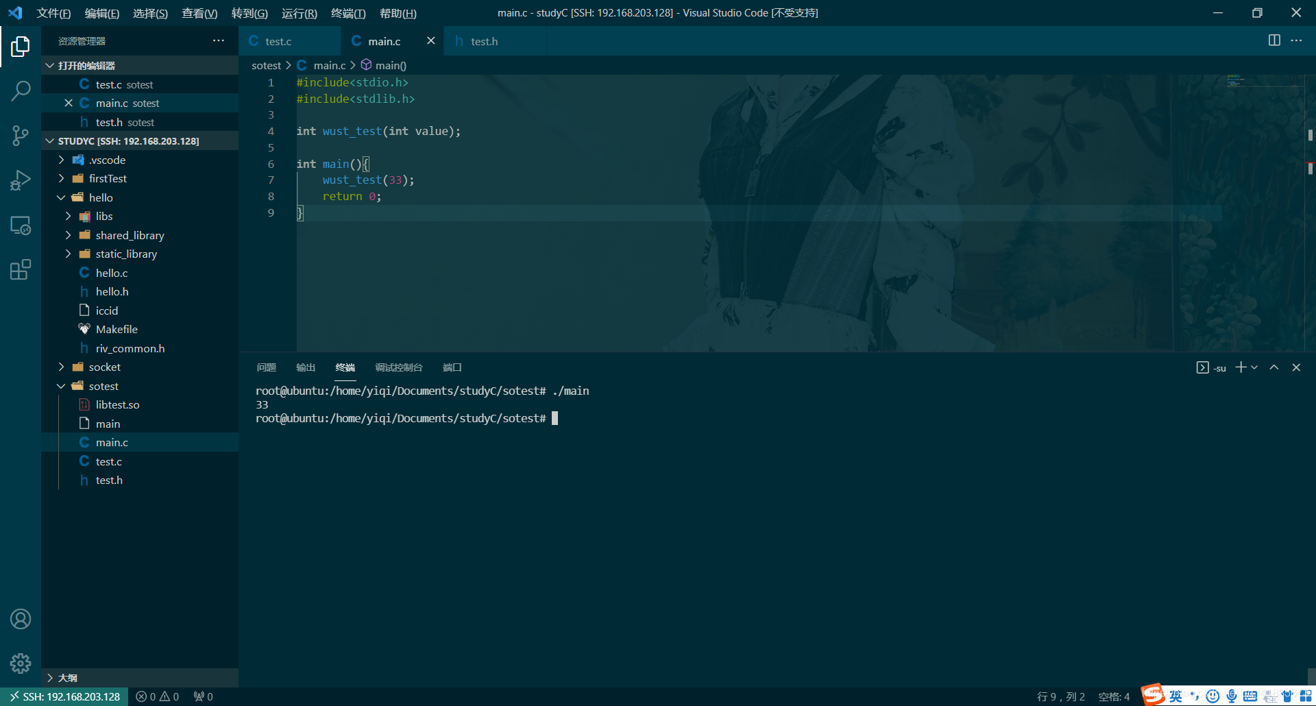 我们在编写 main.c 的时候可以看到,和普通的 main.c 没太大区别,关键点在于 wust_test() 这个方法没实现;那这怎么办呢?动态链接库就起作用了。我们将 动态链接库文件所在路径 配置给 环境变量 LD_LIBRARY_PATH,所以,当系统在找 wust_test() 方法的实现的时候,就会找到这个库,所以请注意:你不配置是找不到滴。在编译的时候,我们也用到了动态链接库,-L指定库文件路径,-l指定库文件,你不指定也会报错。