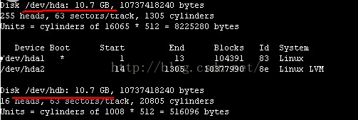 linux系统命令查看磁盘分区情况:fdisk –l命令,磁盘hdb未分配分区,磁盘hda有2个分区,分区hda1和分区hda2,需要将磁盘分区挂载到不同文件路径下,类似于Windows中分区对应C:、D:…